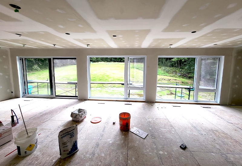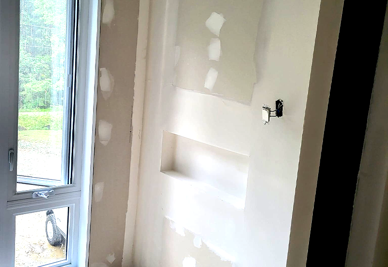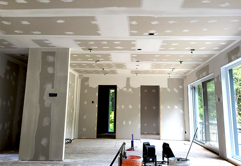 Installation de gypse, application de plâtre et finition intérieure complète pour un rendu propre et professionnel.